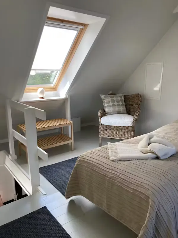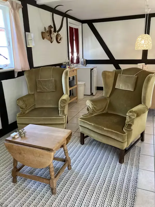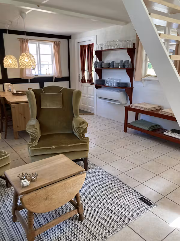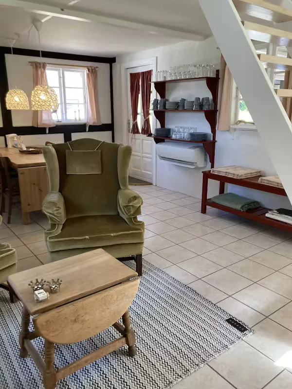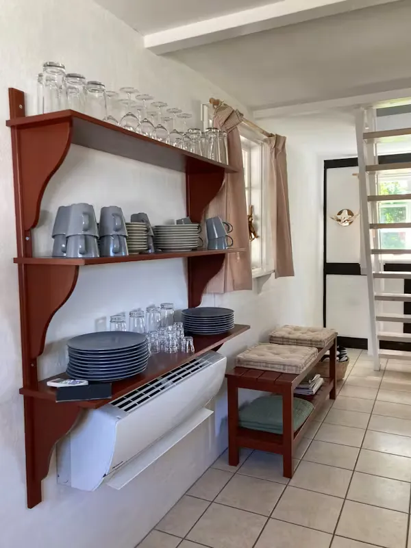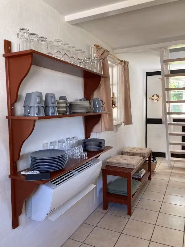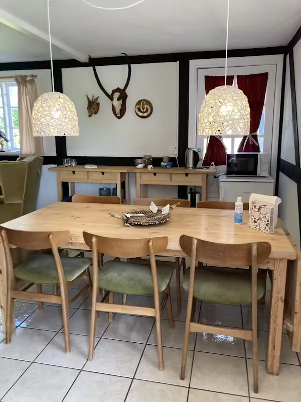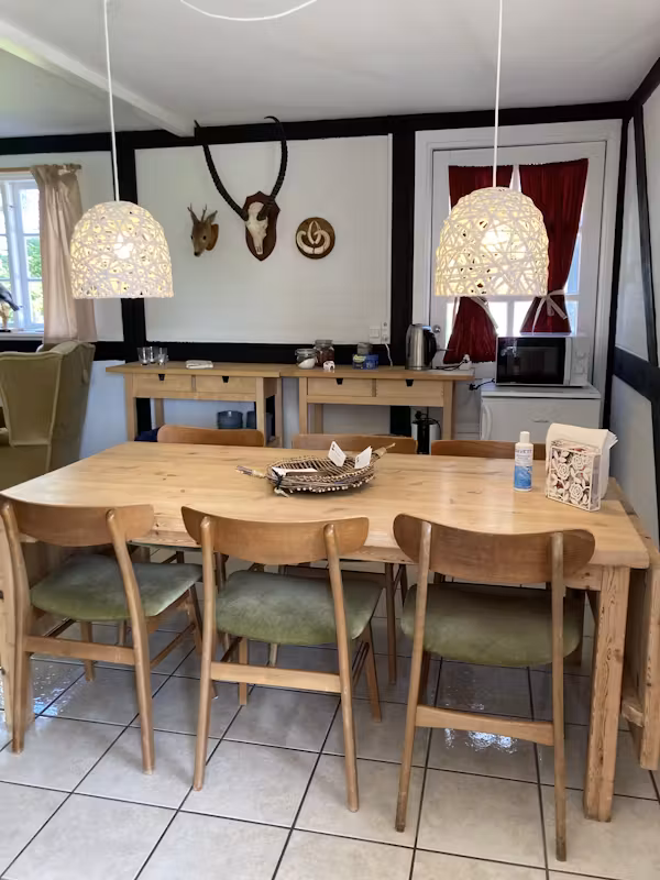 Morgenmaden bliver meget rost af vores gæster. Den består af tre slags brød, herunder hjemmebagte, friske boller, yoghurt med crüsli, omelet af æg fra egne fritgående høns, ostefad, frisk frugt, to slags juice samt friskbrygget kaffe eller te. Såfremt vejret tillader det, vil denne kunne indtages på terrassen med piletræernes hvisken, samt den skønne udsigt til stendyssen og den lille sø med frøer, ænder og grønbenet rørhøns.