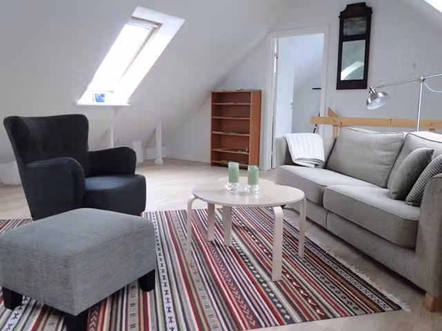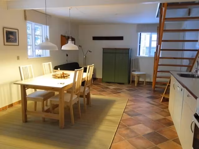 Here at Dyssegaard, we also serve customers who wish to spend a little more time in this magnificent and interesting part of Denmark. Our 3-bedroom apartment distributed over two floors provides six sleeping accommodations. The apartment includes a large kitchen with a dining table seated for six people and a sofa bed for two. There is a lovely bathroom with a shower, a big livingroom with a sofa bed and a bedroom with two separate beds. If needed, it is possible to set up two extra beds downstairs. The apartment is equipped with WiFi, TV, and laundry facilities.